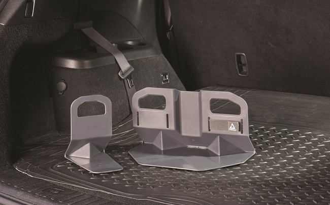 Podpórki są mocowane do podłogi bagażnika dzięki specjalnym wypustkom 3D, które wbijają się w matę dzięki ciężarowi przedmiotu na nim umieszczonym.