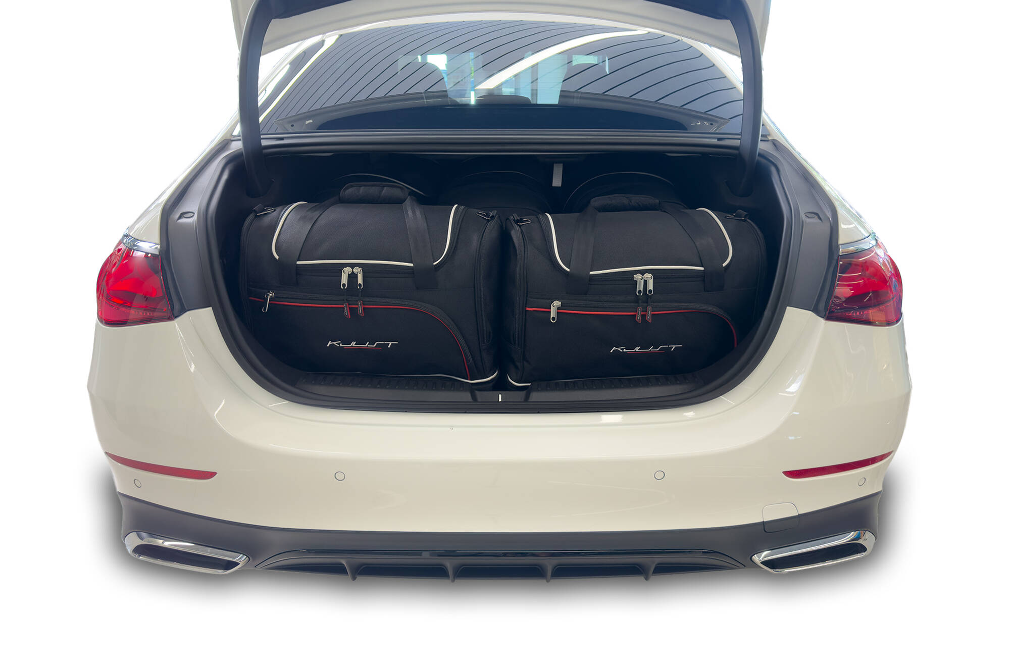 Når du pakker et sæt KJUST-tasker, kan du præcist forudsige, hvor mange ting der kan være i bagagerummet. Kun det, der er i taskerne. Ingen overraskelser.