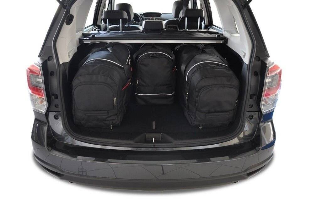 De tassen benutten elke vierkante centimeter van de kofferbak dankzij hun schuine zijden die aansluiten op de hoek van de achterbank. Dit is een uniek kenmerk van KJUST-tassen.
