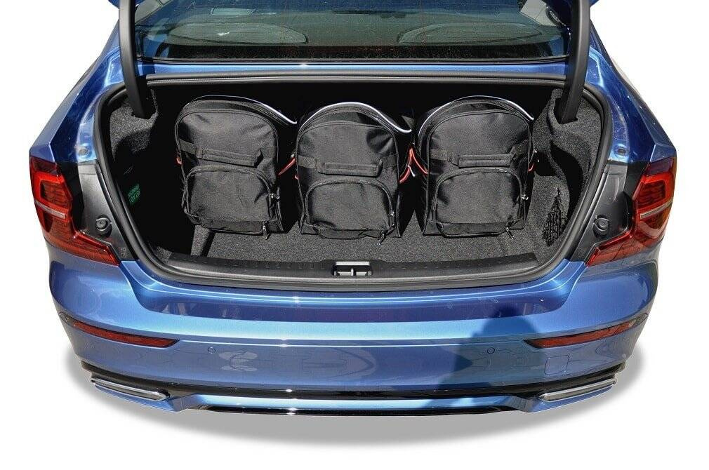 De tassen benutten elke vierkante centimeter van de kofferbak dankzij hun schuine zijden die aansluiten op de hoek van de achterbank. Dit is een uniek kenmerk van KJUST-tassen.