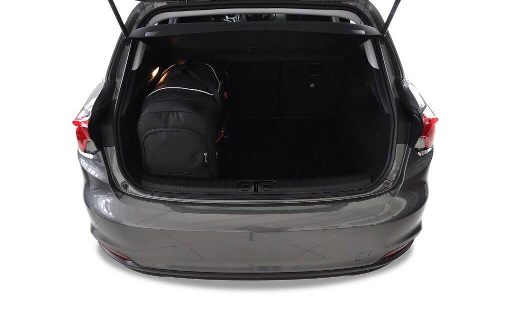 De tassen benutten elke vierkante centimeter van de kofferbak dankzij hun schuine zijden die aansluiten op de hoek van de achterbank. Dit is een uniek kenmerk van KJUST-tassen.