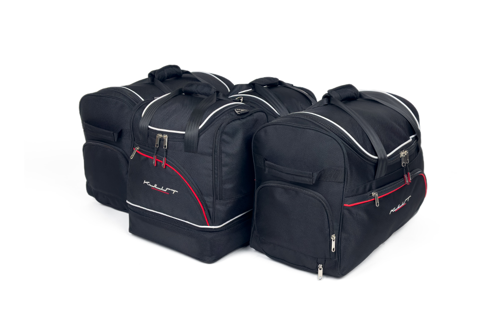 De tassen benutten elke vierkante centimeter van de kofferbak dankzij hun schuine zijden die aansluiten op de hoek van de achterbank. Dit is een uniek kenmerk van KJUST-tassen.
