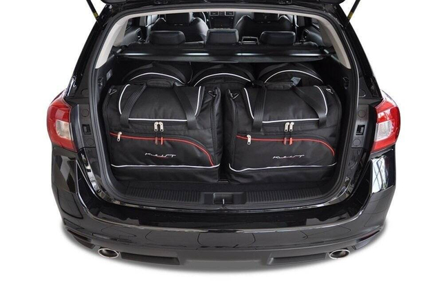 The bags fill every square inch of the boot thanks to their slanted sides that match the angle of the rear seats. This is a unique feature of KJUST car bags.