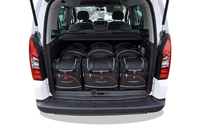 The bags fill every square inch of the boot thanks to their slanted sides that match the angle of the rear seats. This is a unique feature of KJUST car bags.