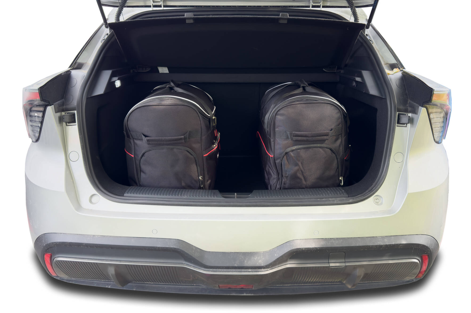The bags fill every square inch of the boot thanks to their slanted sides that match the angle of the rear seats. This is a unique feature of KJUST car bags.