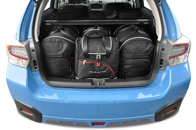 Les sacs remplissent chaque centimètre carré du coffre grâce à leurs côtés inclinés qui correspondent à l'inclinaison des sièges arrière. C'est une caractéristique unique des sacs KJUST.