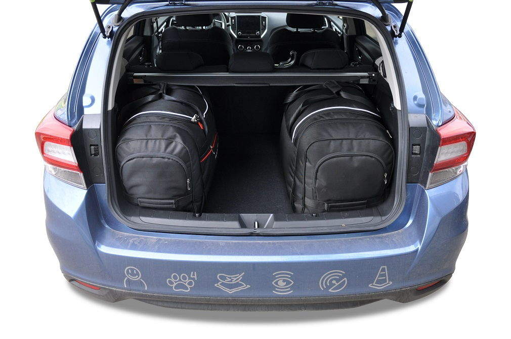 Les sacs remplissent chaque centimètre carré du coffre grâce à leurs côtés inclinés qui correspondent à l'inclinaison des sièges arrière. C'est une caractéristique unique des sacs KJUST.