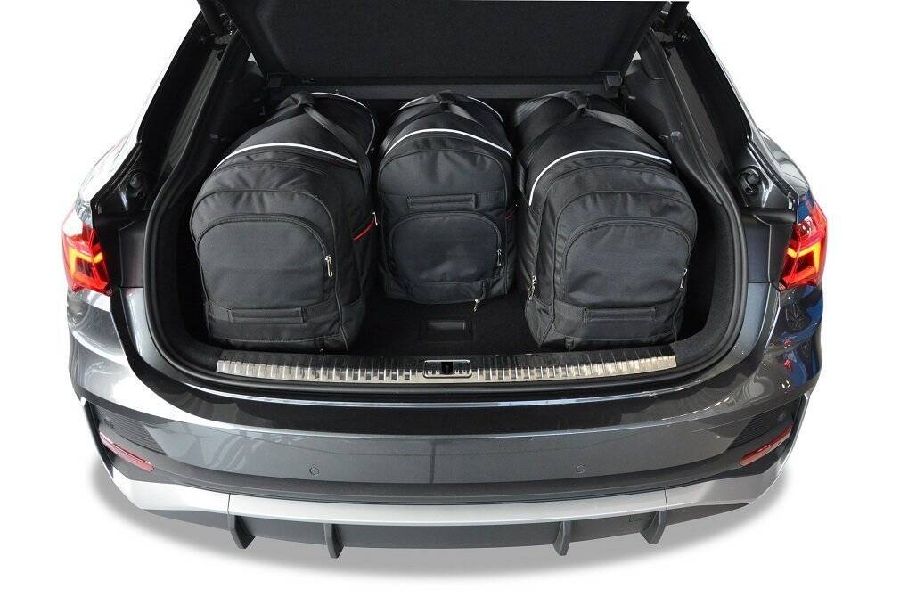Les sacs remplissent chaque centimètre carré du coffre grâce à leurs côtés inclinés qui correspondent à l'inclinaison des sièges arrière. C'est une caractéristique unique des sacs KJUST.