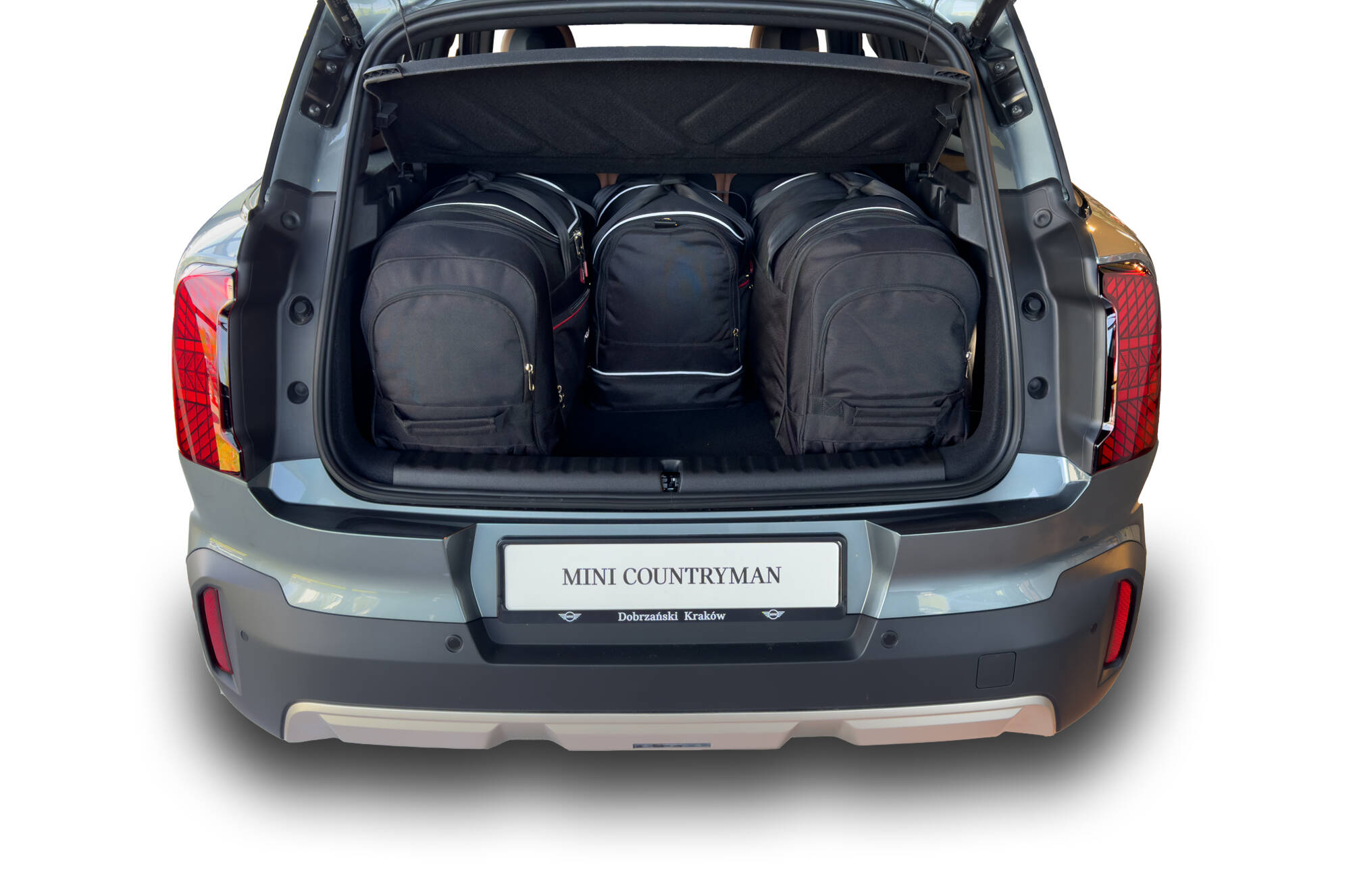 Les sacs remplissent chaque centimètre carré du coffre grâce à leurs côtés inclinés qui correspondent à l'inclinaison des sièges arrière. C'est une caractéristique unique des sacs KJUST.