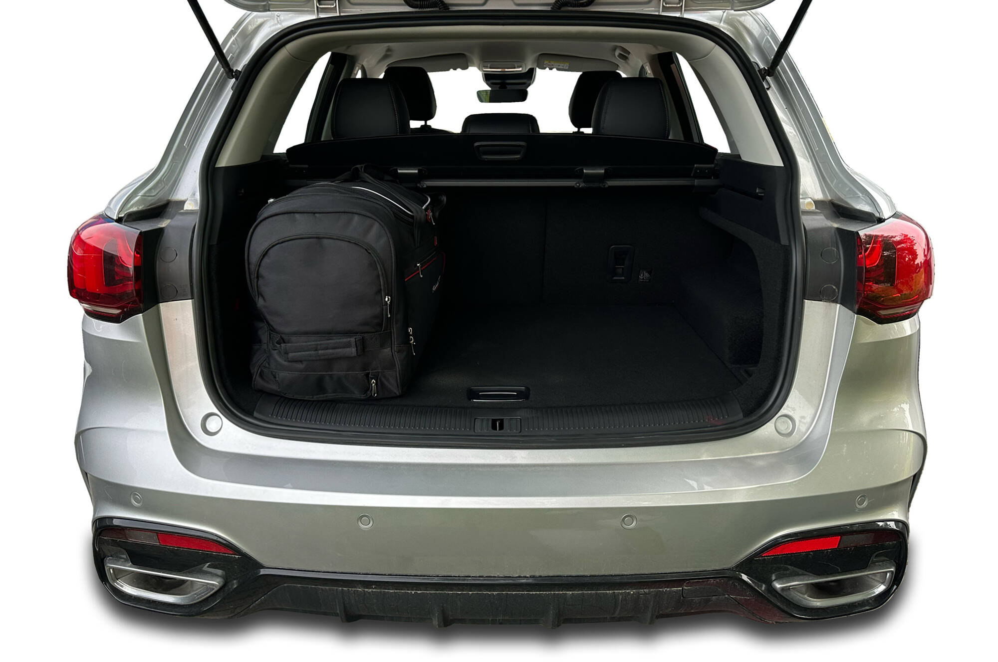 Les sacs remplissent chaque centimètre carré du coffre grâce à leurs côtés inclinés qui correspondent à l'inclinaison des sièges arrière. C'est une caractéristique unique des sacs KJUST.