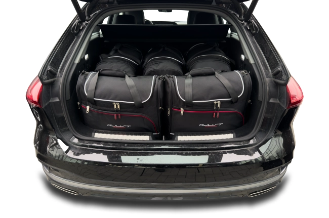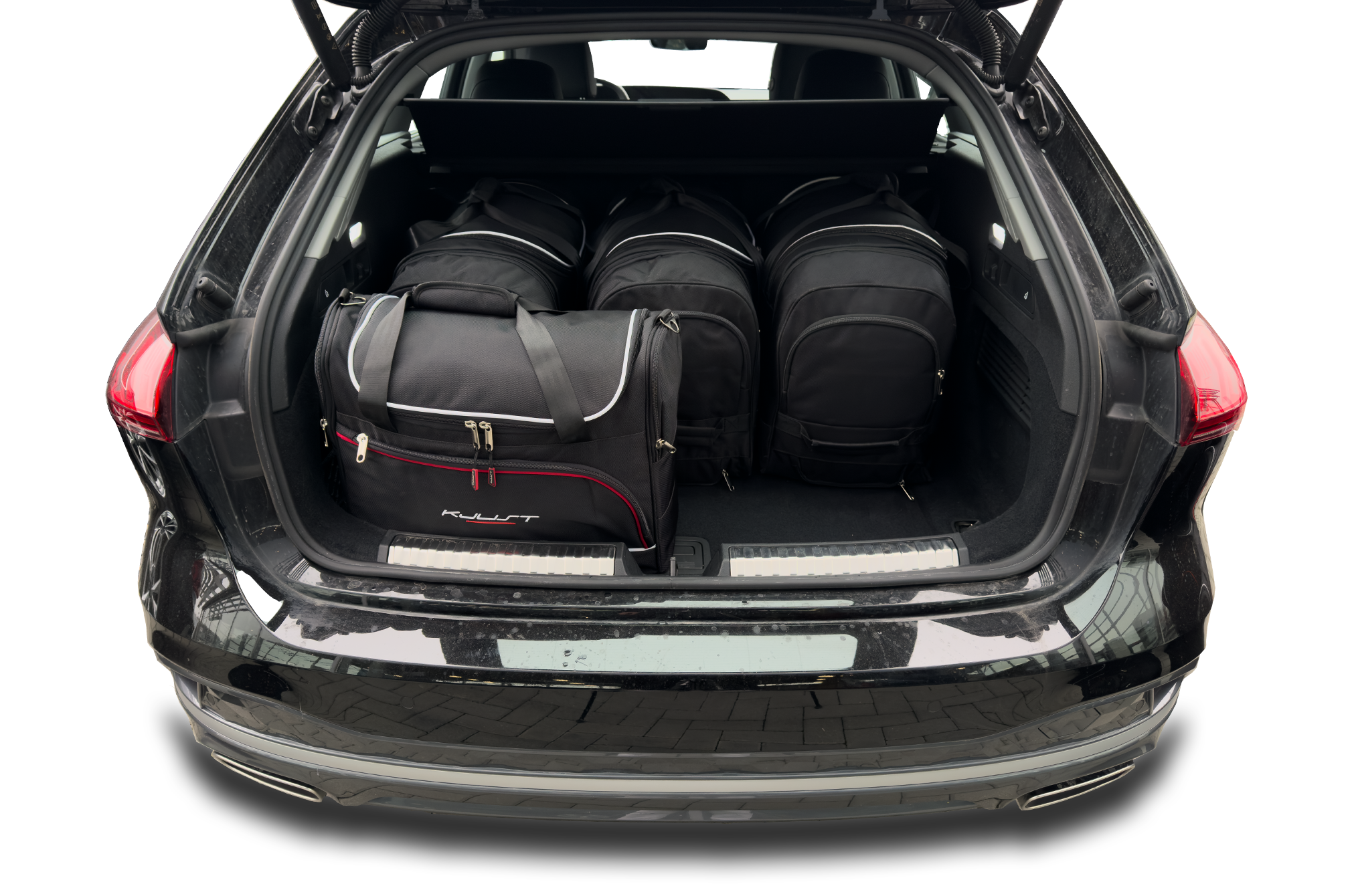 Les sacs remplissent chaque centimètre carré du coffre grâce à leurs côtés inclinés qui correspondent à l'inclinaison des sièges arrière. C'est une caractéristique unique des sacs KJUST.
