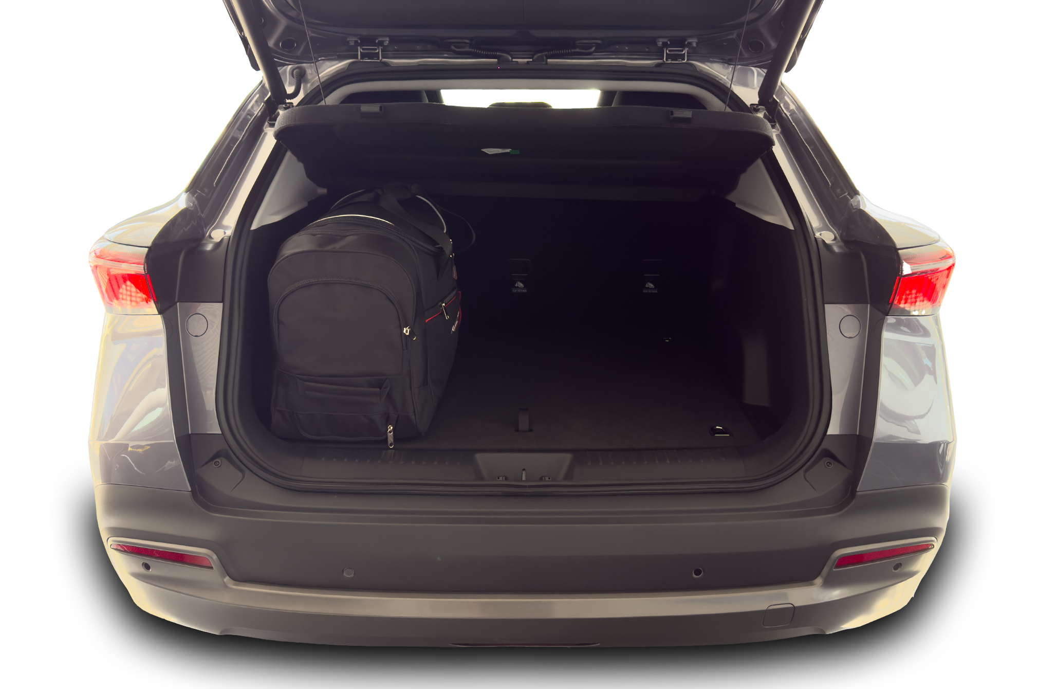 Les sacs remplissent chaque centimètre carré du coffre grâce à leurs côtés inclinés qui correspondent à l'inclinaison des sièges arrière. C'est une caractéristique unique des sacs KJUST.