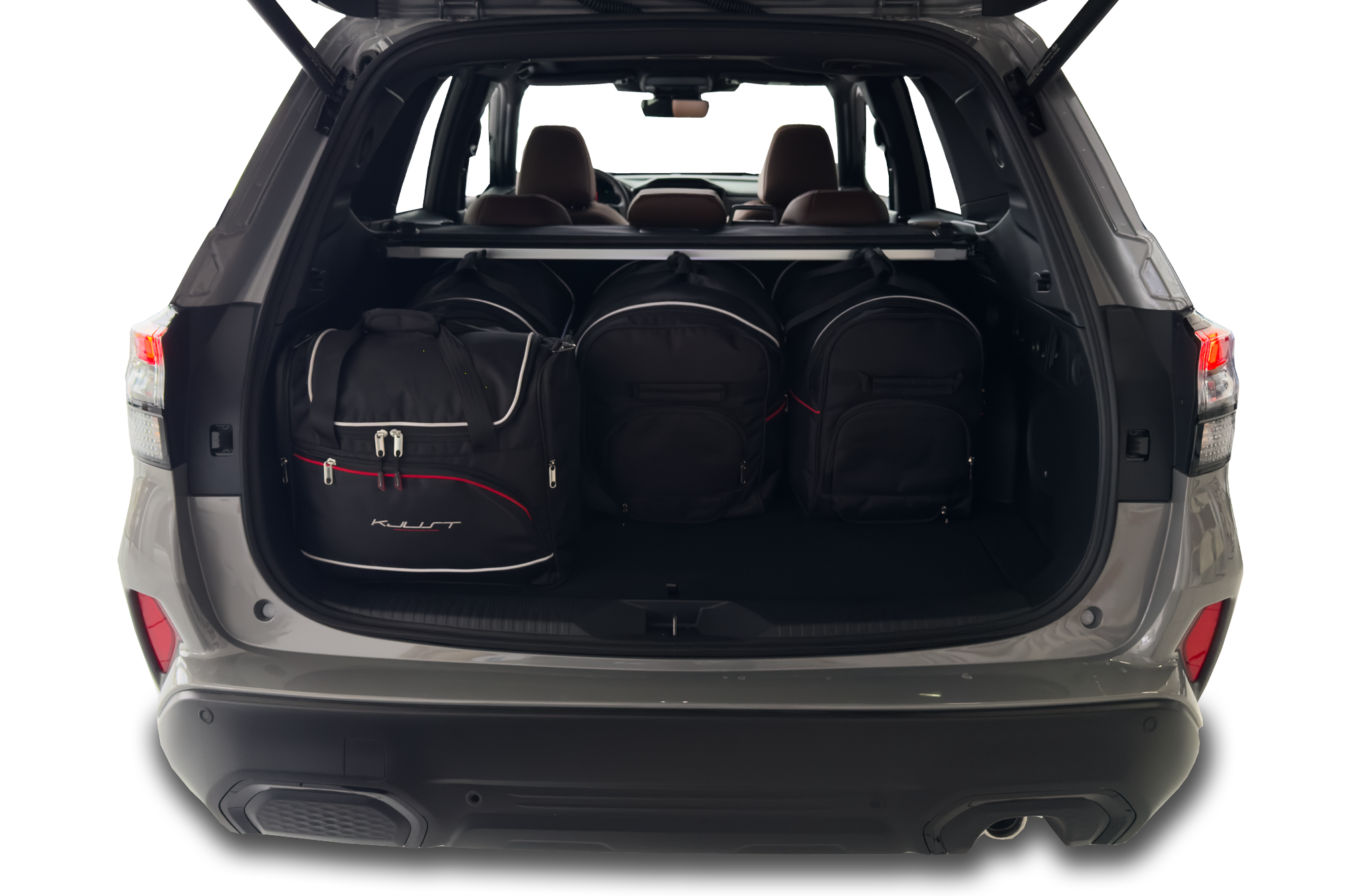 Les sacs remplissent chaque centimètre carré du coffre grâce à leurs côtés inclinés qui correspondent à l'inclinaison des sièges arrière. C'est une caractéristique unique des sacs KJUST.