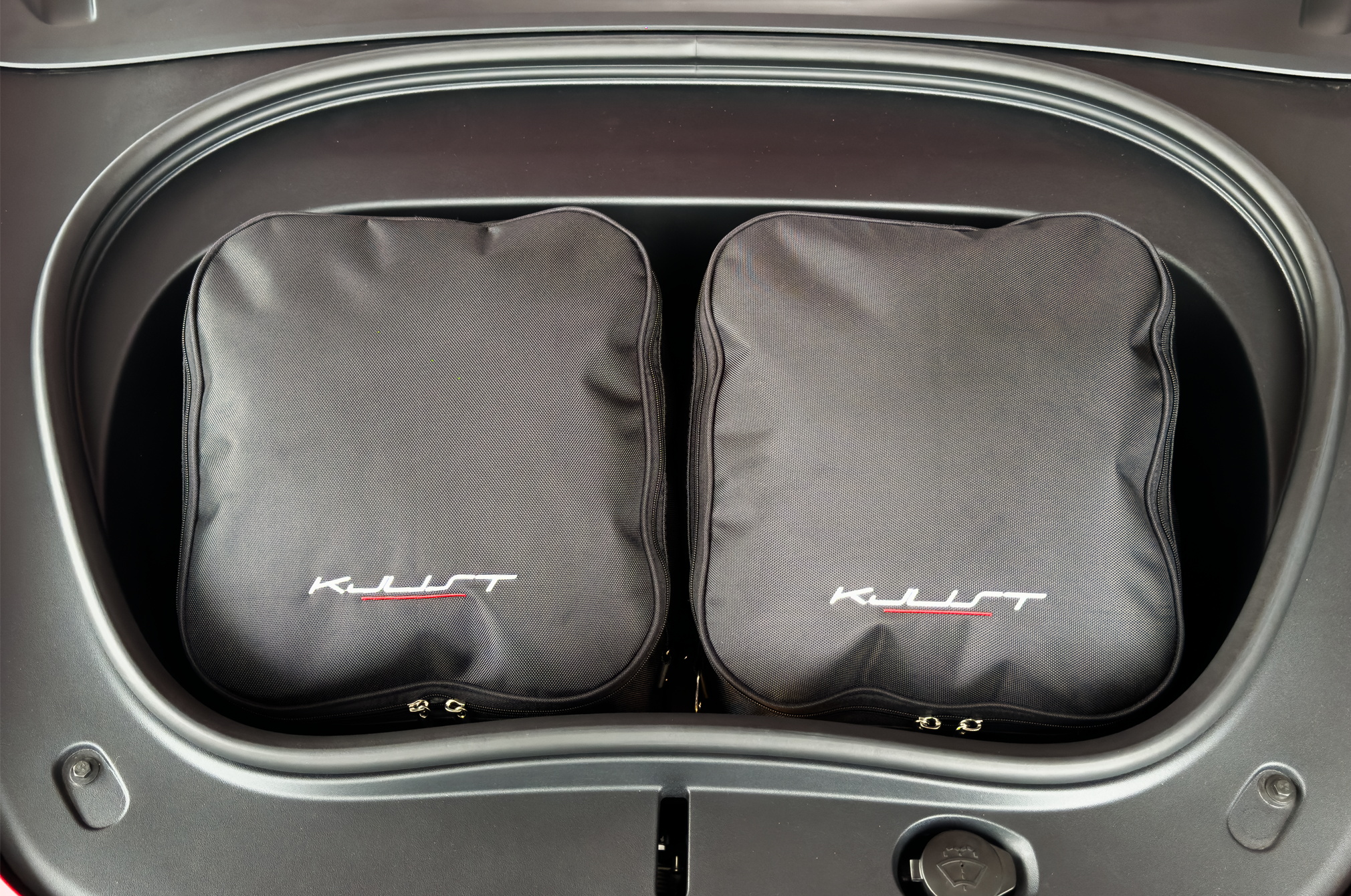 Les sacs remplissent chaque centimètre carré du coffre grâce à leurs côtés inclinés qui correspondent à l'inclinaison des sièges arrière. C'est une caractéristique unique des sacs KJUST.