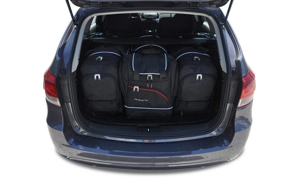 Dank ihrer schrägen Seiten, die an die Neigung der Rücksitze angepasst sind, füllen die Taschen den Kofferraum optimal aus. Dies ist eine einzigartige Eigenschaft der KJUST Taschen.