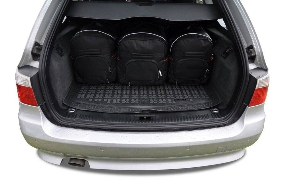 Dank ihrer schrägen Seiten, die an die Neigung der Rücksitze angepasst sind, füllen die Taschen den Kofferraum optimal aus. Dies ist eine einzigartige Eigenschaft der KJUST Taschen.