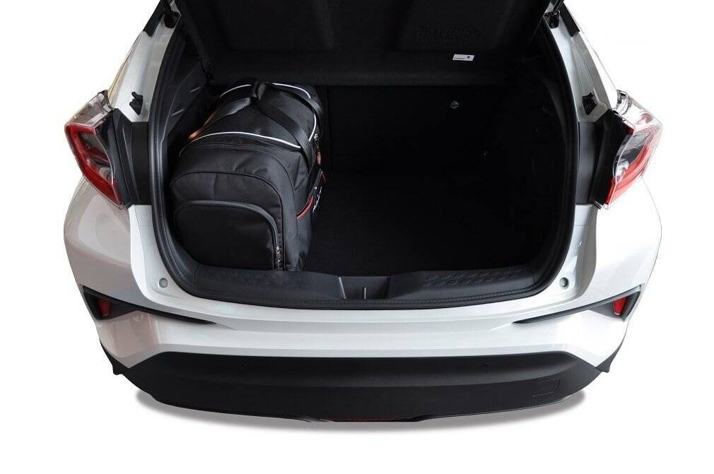 Dank ihrer schrägen Seiten, die an die Neigung der Rücksitze angepasst sind, füllen die Taschen den Kofferraum optimal aus. Dies ist eine einzigartige Eigenschaft der KJUST Taschen.