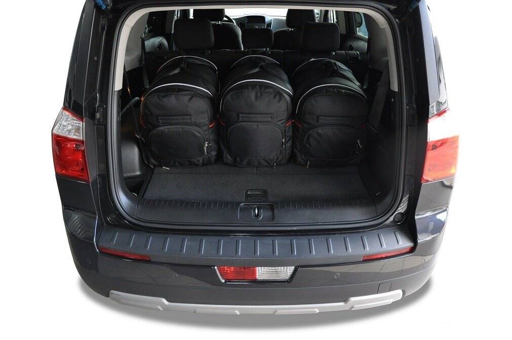 Dank ihrer schrägen Seiten, die an die Neigung der Rücksitze angepasst sind, füllen die Taschen den Kofferraum optimal aus. Dies ist eine einzigartige Eigenschaft der KJUST Taschen.