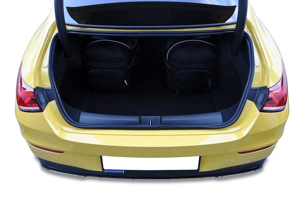 Dank ihrer schrägen Seiten, die an die Neigung der Rücksitze angepasst sind, füllen die Taschen den Kofferraum optimal aus. Dies ist eine einzigartige Eigenschaft der KJUST Taschen.