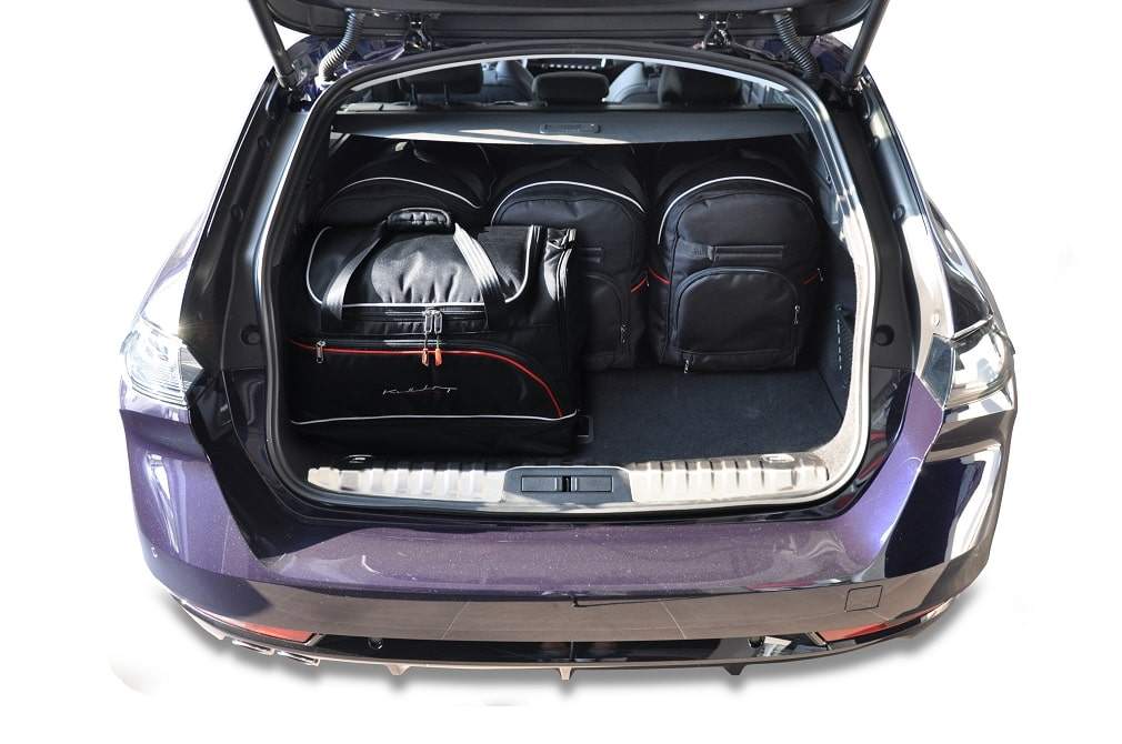 Dank ihrer schrägen Seiten, die an die Neigung der Rücksitze angepasst sind, füllen die Taschen den Kofferraum optimal aus. Dies ist eine einzigartige Eigenschaft der KJUST Taschen.