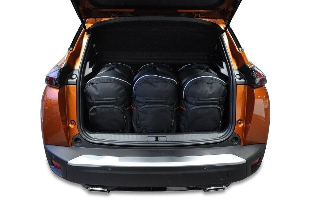 Dank ihrer schrägen Seiten, die an die Neigung der Rücksitze angepasst sind, füllen die Taschen den Kofferraum optimal aus. Dies ist eine einzigartige Eigenschaft der KJUST Taschen.