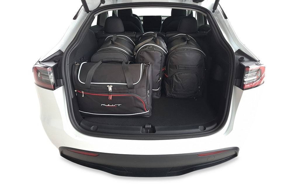 Dank ihrer schrägen Seiten, die an die Neigung der Rücksitze angepasst sind, füllen die Taschen den Kofferraum optimal aus. Dies ist eine einzigartige Eigenschaft der KJUST Taschen.
