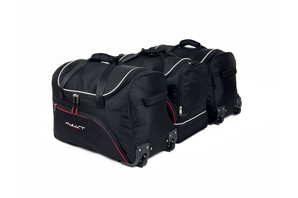 Dank ihrer schrägen Seiten, die an die Neigung der Rücksitze angepasst sind, füllen die Taschen den Kofferraum optimal aus. Dies ist eine einzigartige Eigenschaft der KJUST Taschen.