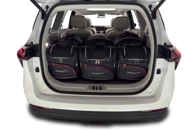 Dank ihrer schrägen Seiten, die an die Neigung der Rücksitze angepasst sind, füllen die Taschen den Kofferraum optimal aus. Dies ist eine einzigartige Eigenschaft der KJUST Taschen.