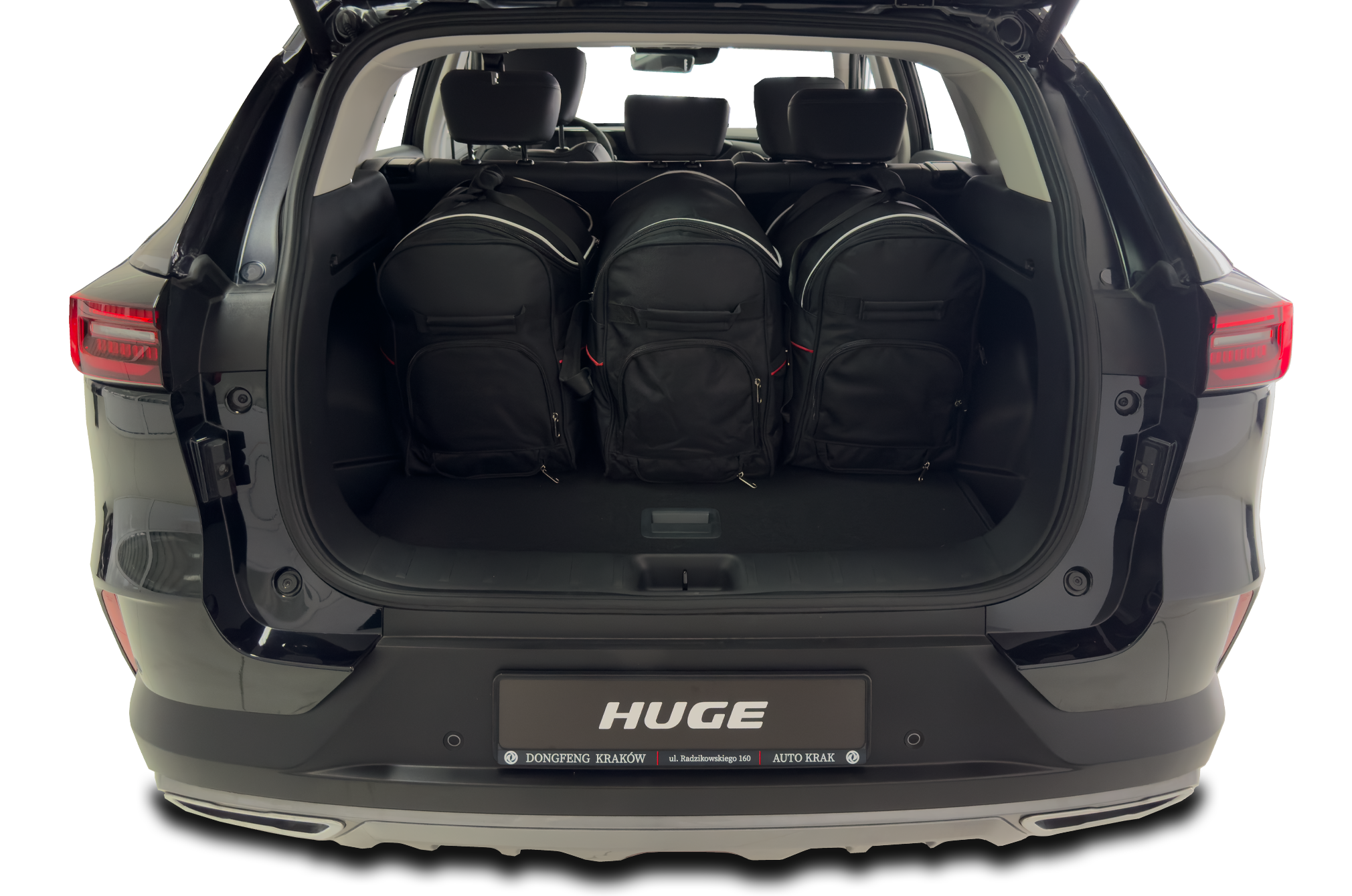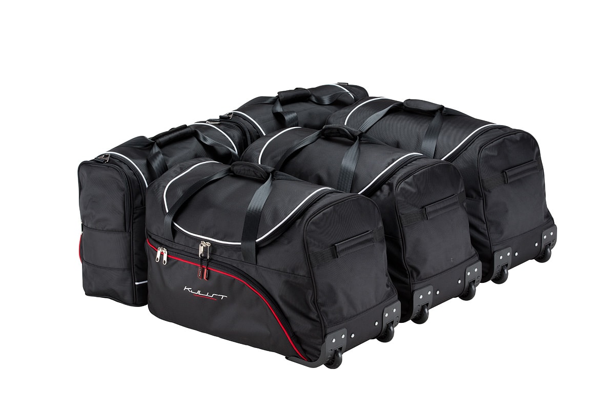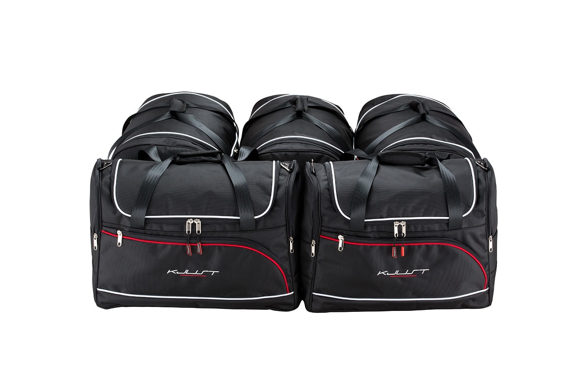 Dank ihrer schrägen Seiten, die an die Neigung der Rücksitze angepasst sind, füllen die Taschen den Kofferraum optimal aus. Dies ist eine einzigartige Eigenschaft der KJUST Taschen.