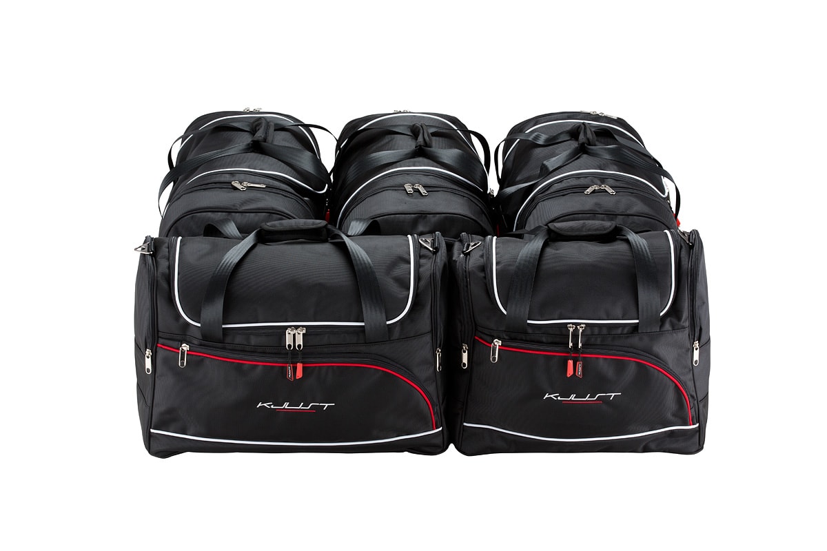 Dank ihrer schrägen Seiten, die an die Neigung der Rücksitze angepasst sind, füllen die Taschen den Kofferraum optimal aus. Dies ist eine einzigartige Eigenschaft der KJUST Taschen.