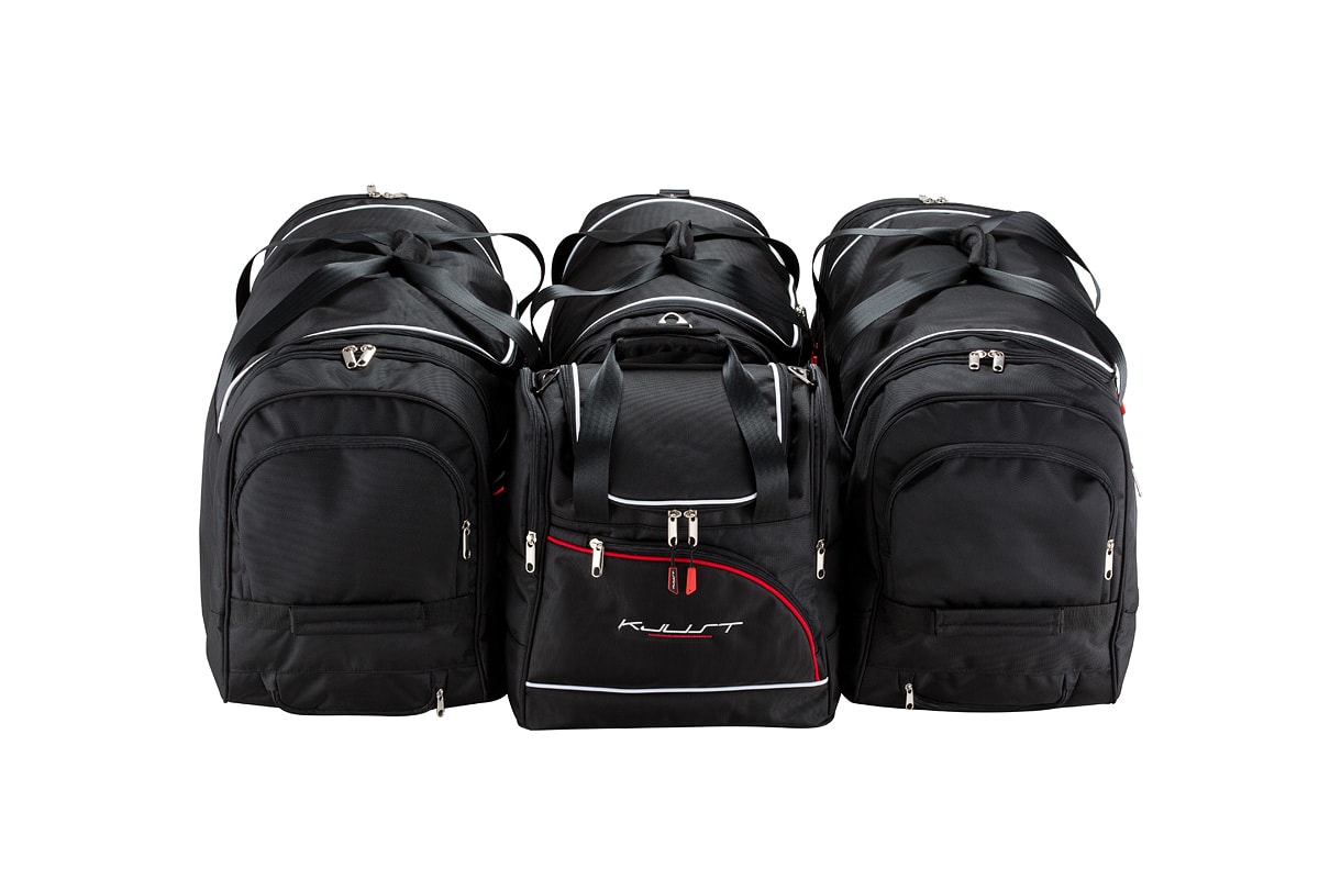 Dank ihrer schrägen Seiten, die an die Neigung der Rücksitze angepasst sind, füllen die Taschen den Kofferraum optimal aus. Dies ist eine einzigartige Eigenschaft der KJUST Taschen.