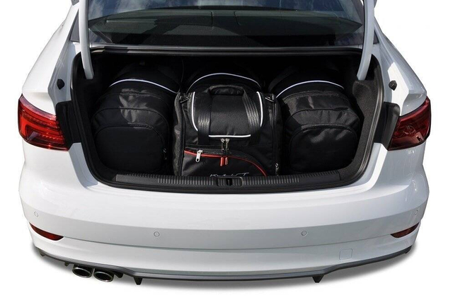 Le borse riempiono ogni centimetro quadrato del bagagliaio grazie ai lati inclinati che si allineano con l'angolazione dei sedili posteriori. Questa è una caratteristica unica delle borse KJUST.
