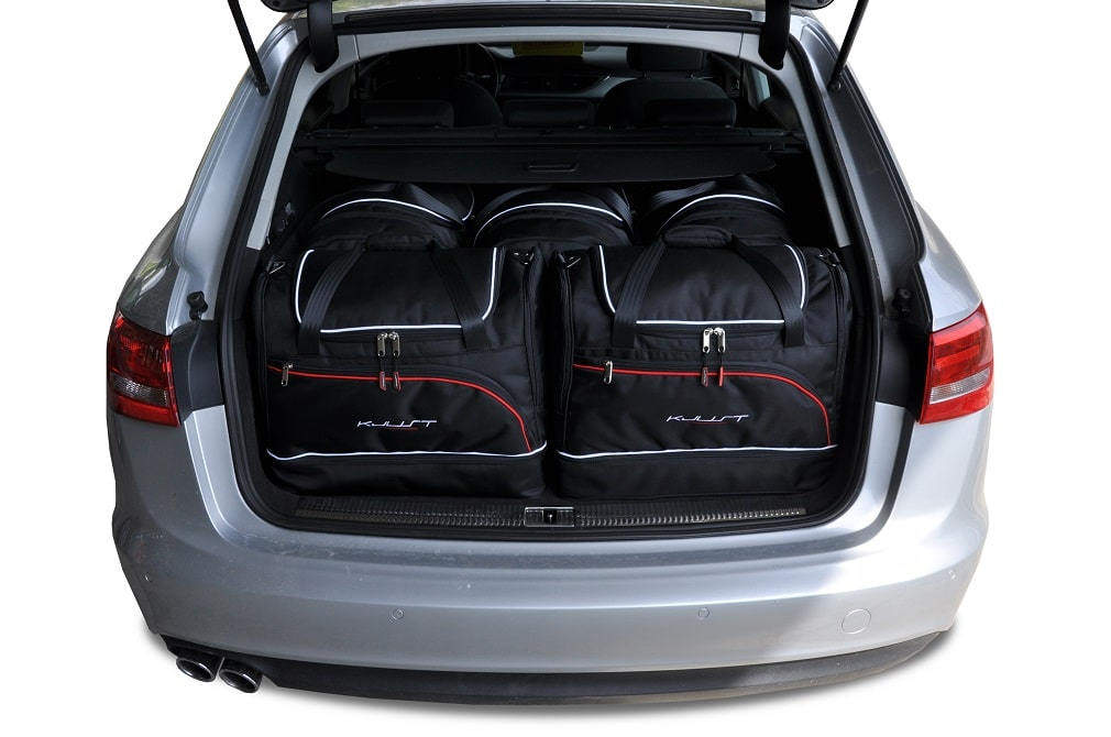 Le borse riempiono ogni centimetro quadrato del bagagliaio grazie ai lati inclinati che si allineano con l'angolazione dei sedili posteriori. Questa è una caratteristica unica delle borse KJUST.