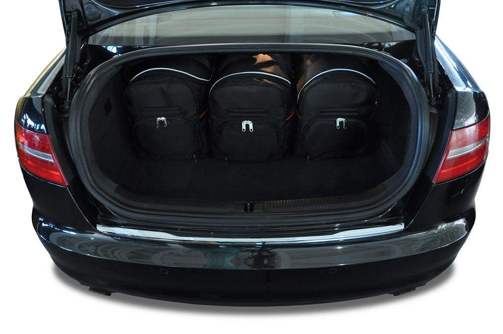 Le borse riempiono ogni centimetro quadrato del bagagliaio grazie ai lati inclinati che si allineano con l'angolazione dei sedili posteriori. Questa è una caratteristica unica delle borse KJUST.