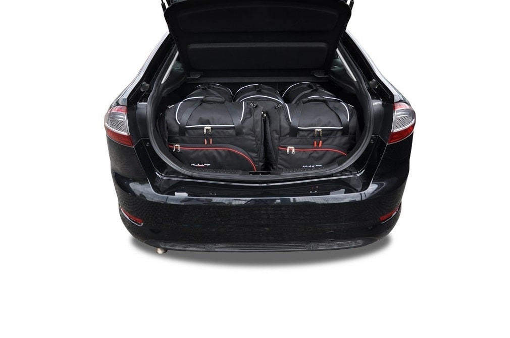Le borse riempiono ogni centimetro quadrato del bagagliaio grazie ai lati inclinati che si allineano con l'angolazione dei sedili posteriori. Questa è una caratteristica unica delle borse KJUST.