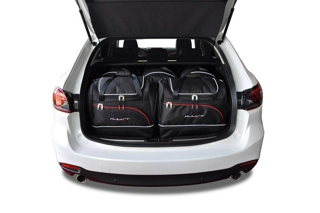 Le borse riempiono ogni centimetro quadrato del bagagliaio grazie ai lati inclinati che si allineano con l'angolazione dei sedili posteriori. Questa è una caratteristica unica delle borse KJUST.