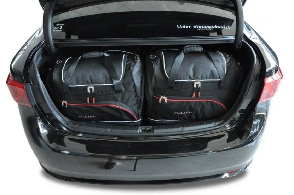 Le borse riempiono ogni centimetro quadrato del bagagliaio grazie ai lati inclinati che si allineano con l'angolazione dei sedili posteriori. Questa è una caratteristica unica delle borse KJUST.