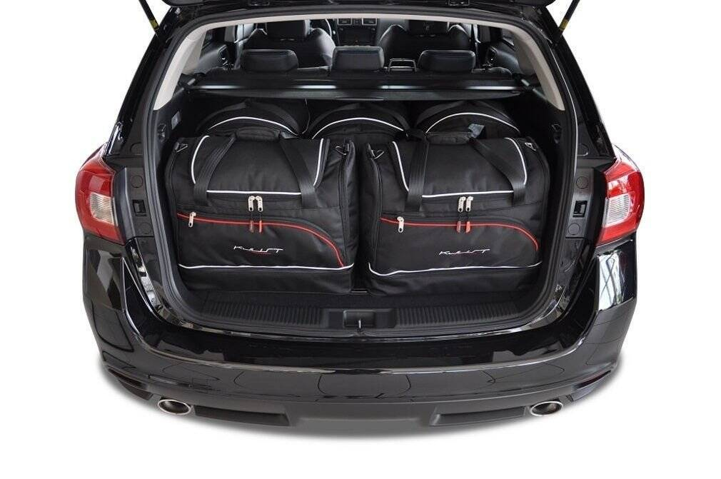 Le borse riempiono ogni centimetro quadrato del bagagliaio grazie ai lati inclinati che si allineano con l'angolazione dei sedili posteriori. Questa è una caratteristica unica delle borse KJUST.