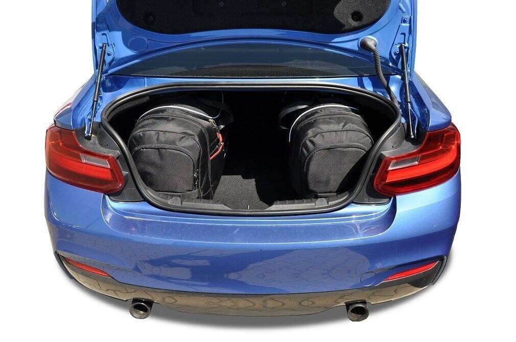 Le borse riempiono ogni centimetro quadrato del bagagliaio grazie ai lati inclinati che si allineano con l'angolazione dei sedili posteriori. Questa è una caratteristica unica delle borse KJUST.