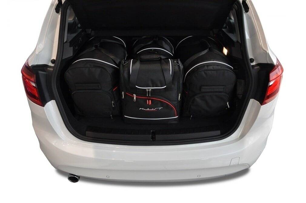 Le borse riempiono ogni centimetro quadrato del bagagliaio grazie ai lati inclinati che si allineano con l'angolazione dei sedili posteriori. Questa è una caratteristica unica delle borse KJUST.