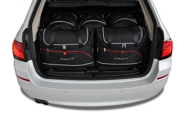 Le borse riempiono ogni centimetro quadrato del bagagliaio grazie ai lati inclinati che si allineano con l'angolazione dei sedili posteriori. Questa è una caratteristica unica delle borse KJUST.