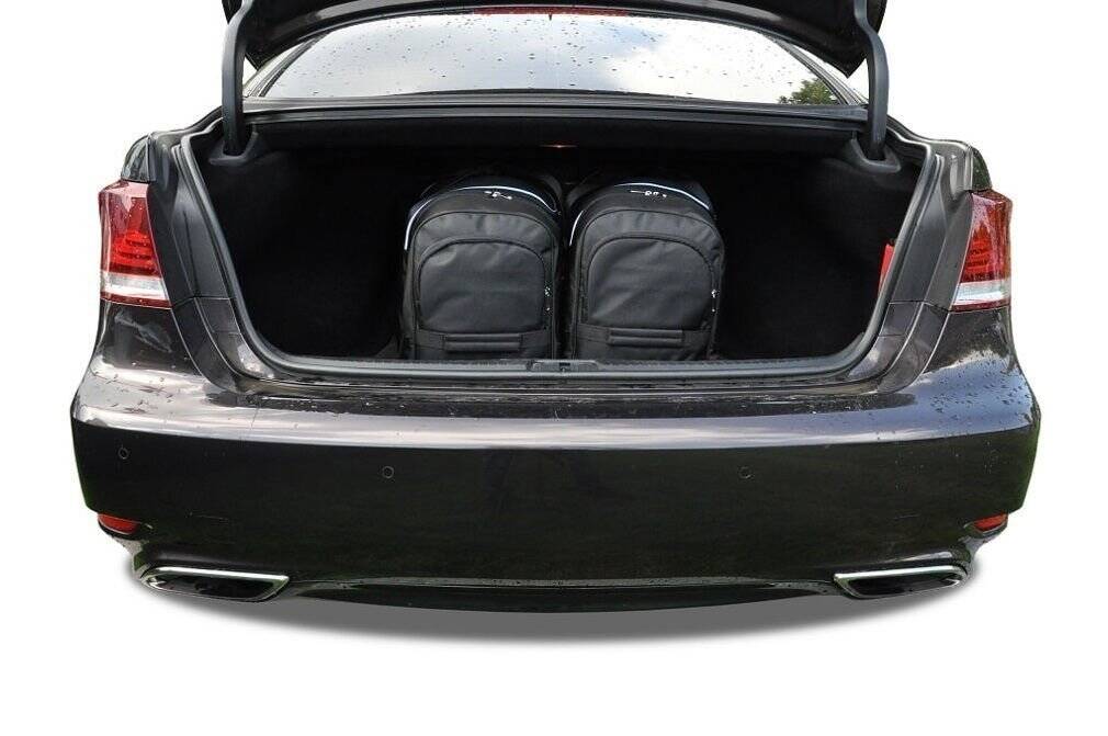 Le borse riempiono ogni centimetro quadrato del bagagliaio grazie ai lati inclinati che si allineano con l'angolazione dei sedili posteriori. Questa è una caratteristica unica delle borse KJUST.