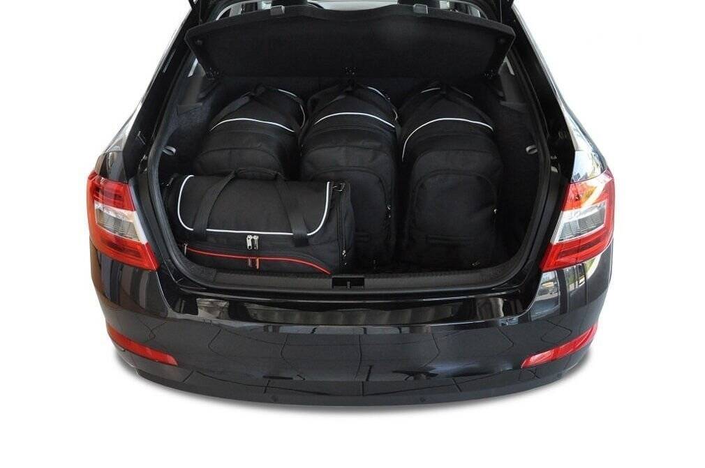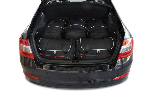Le borse riempiono ogni centimetro quadrato del bagagliaio grazie ai lati inclinati che si allineano con l'angolazione dei sedili posteriori. Questa è una caratteristica unica delle borse KJUST.