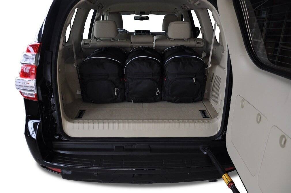 Le borse riempiono ogni centimetro quadrato del bagagliaio grazie ai lati inclinati che si allineano con l'angolazione dei sedili posteriori. Questa è una caratteristica unica delle borse KJUST.