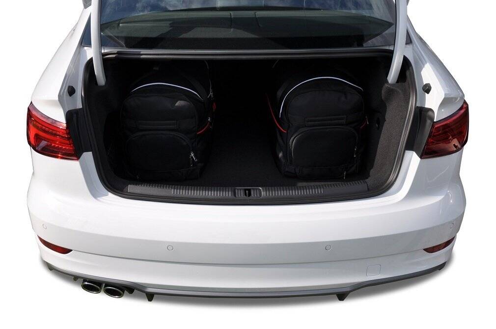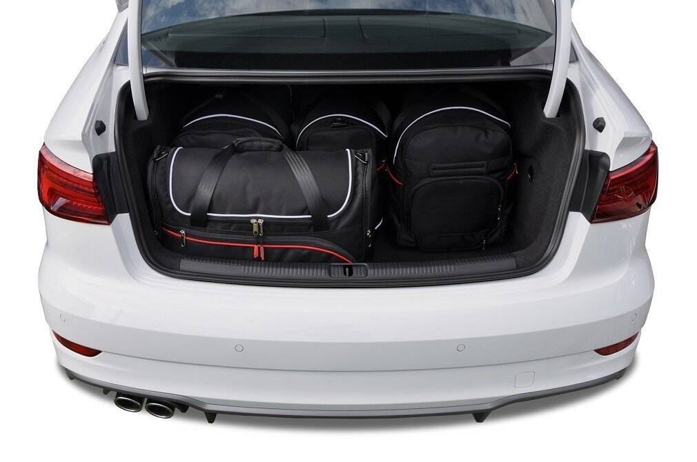 Le borse riempiono ogni centimetro quadrato del bagagliaio grazie ai lati inclinati che si allineano con l'angolazione dei sedili posteriori. Questa è una caratteristica unica delle borse KJUST.