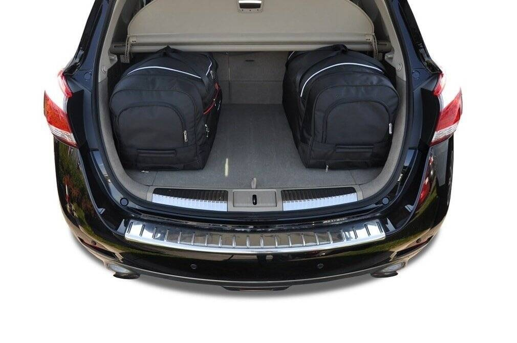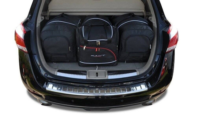 Le borse riempiono ogni centimetro quadrato del bagagliaio grazie ai lati inclinati che si allineano con l'angolazione dei sedili posteriori. Questa è una caratteristica unica delle borse KJUST.