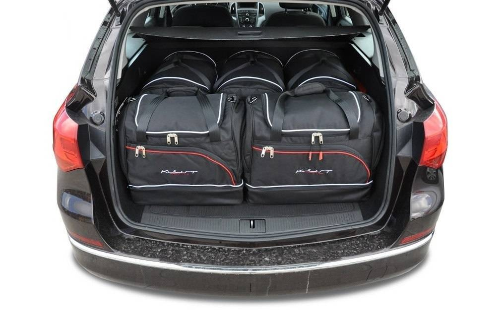 Le borse riempiono ogni centimetro quadrato del bagagliaio grazie ai lati inclinati che si allineano con l'angolazione dei sedili posteriori. Questa è una caratteristica unica delle borse KJUST.