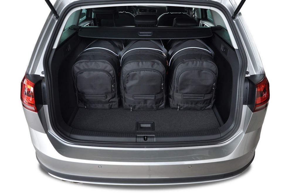 Le borse riempiono ogni centimetro quadrato del bagagliaio grazie ai lati inclinati che si allineano con l'angolazione dei sedili posteriori. Questa è una caratteristica unica delle borse KJUST.