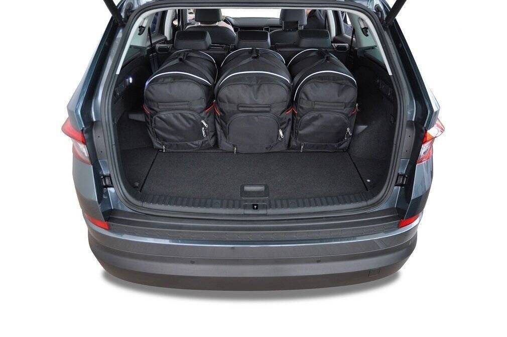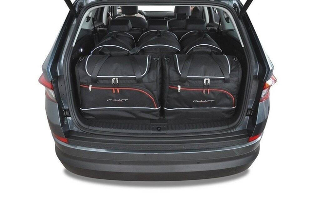Le borse riempiono ogni centimetro quadrato del bagagliaio grazie ai lati inclinati che si allineano con l'angolazione dei sedili posteriori. Questa è una caratteristica unica delle borse KJUST.