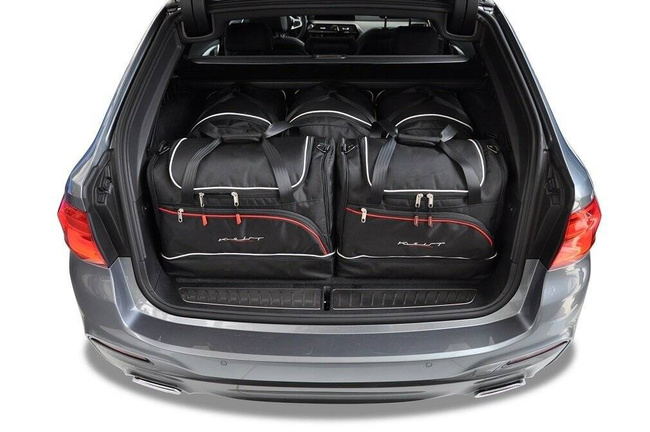 Le borse riempiono ogni centimetro quadrato del bagagliaio grazie ai lati inclinati che si allineano con l'angolazione dei sedili posteriori. Questa è una caratteristica unica delle borse KJUST.